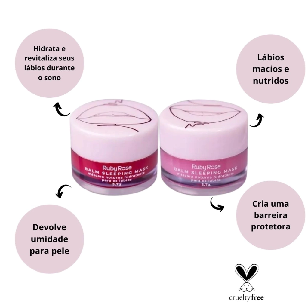Balm Sleeping Mask - Ruby Rose A Balm Sleeping Mask é uma máscara labial noturna perfeita para hidratar e renovar os seus lábios. Modo de uso: Aplique generosamente nos lábios durante a noite. Reaplique diaramente, se necessário.