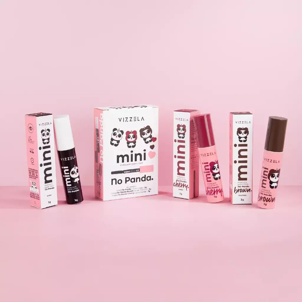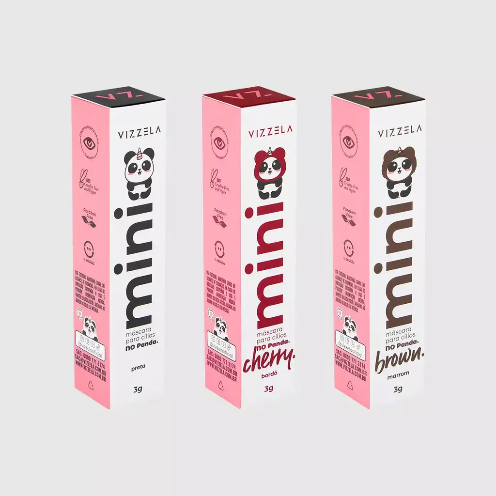 kit mini máscaras para cílios no panda – preta, marrom e bordô