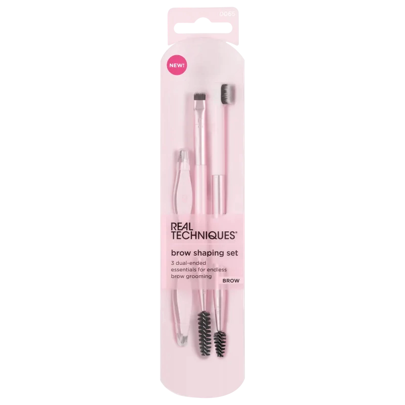 Kit com pincéis para um cuidado completo das sobrancelhas. Real Techniques Brow Styling Set Tweezers confere um visual mais marcante e estiloso.