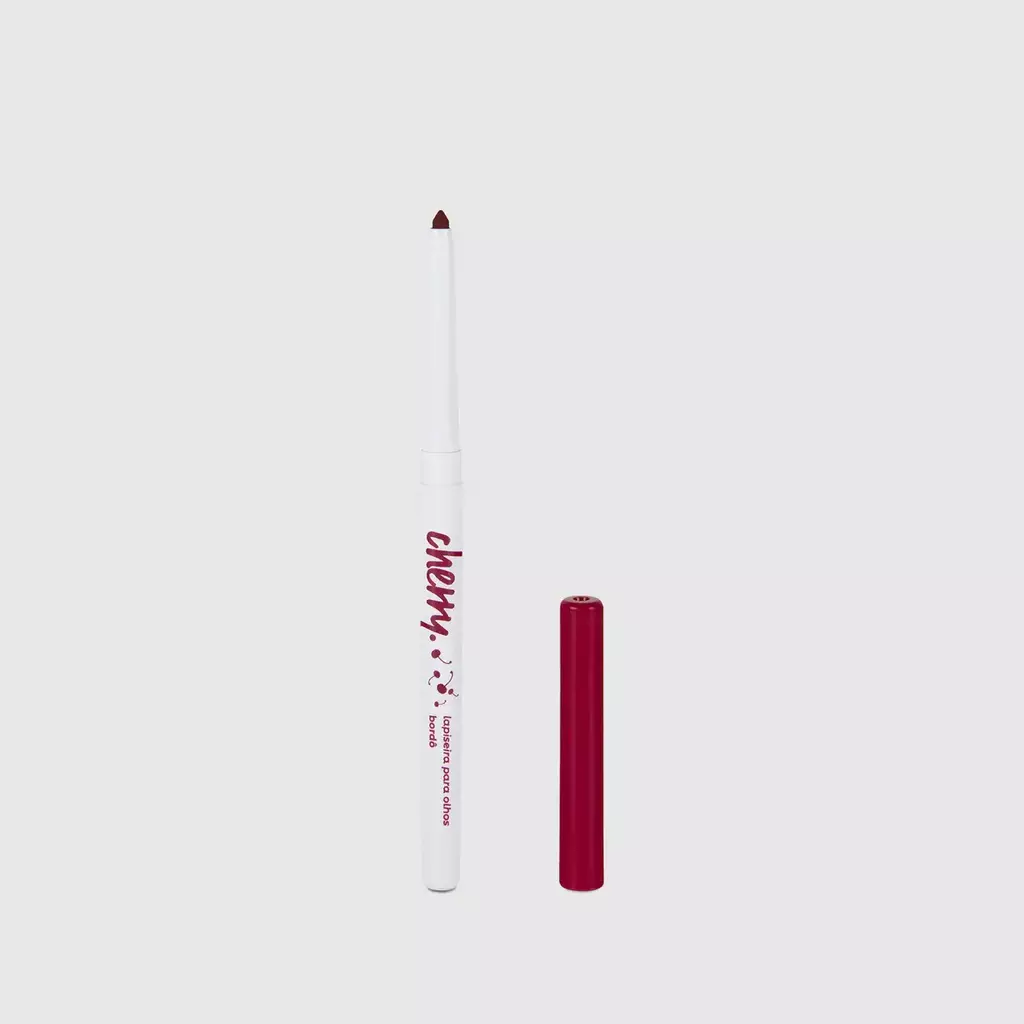 Com coloração bordô, destaca especialmente os olhos castanhos claros e esverdeados . Possui textura macia e alta pigmentação, ideal para aplicação na linha d’água, como delineado preciso ou esfumado, trazendo um toque de cor sofisticado para a make.